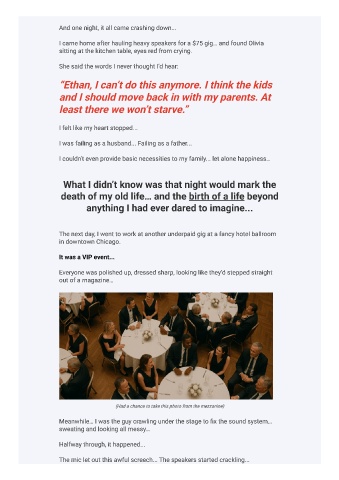 The next day, I went to work at another underpaid gig at a fancy hotel ballroom